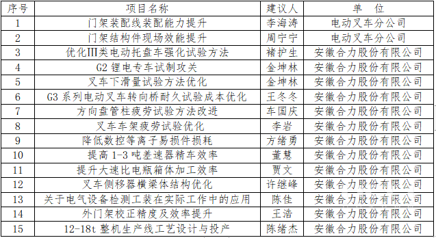 安徽叉車集團多個項目在安徽省職工技術創(chuàng)新競賽中獲獎